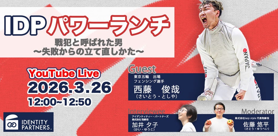 アイデンティティー・パートナーズ(東京都渋谷区)は、ビジネスパーソン向けオンライン・トーク企画「IDPパワーランチvol.3」を2026年3月26日(木)12:00〜12:50にYouTubeで配信します。参加費は無料で、事前登録制です。