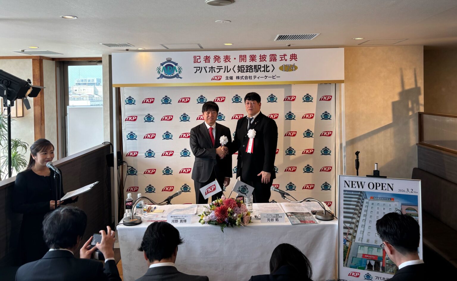 披露式典は、ティーケーピーとのフランチャイズ契約締結を背景に行われ、姫路駅周辺での出店を通じてブランドの浸透と運営網の拡大を狙います。フランチャイズは、ホテルブランド側が運営ノウハウや仕様を提供し、加盟企業が施設運営を担う方式です。