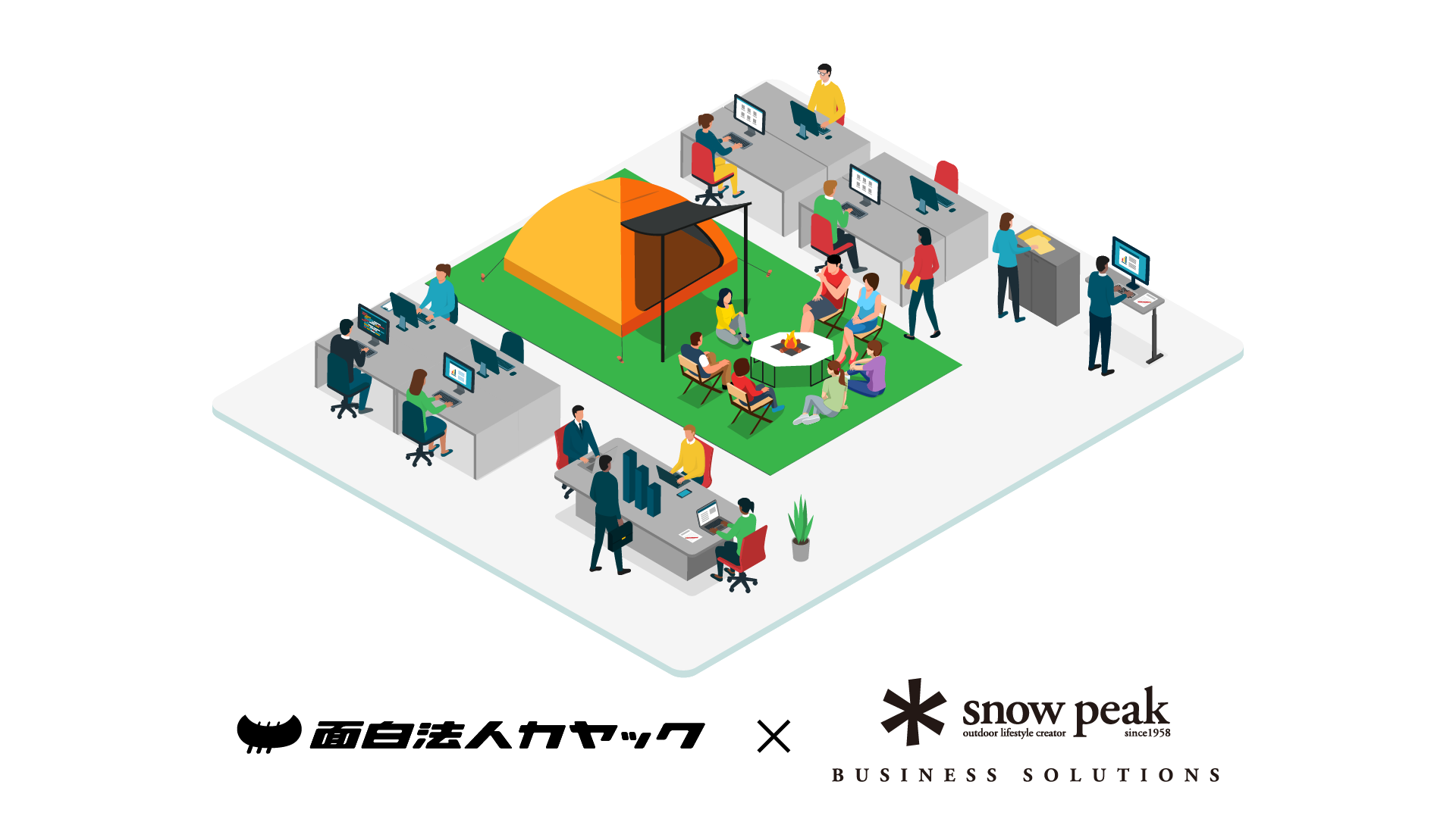 カヤック(神奈川県鎌倉市)は2026年4月1日、スノーピークビジネスソリューションズと共同で、焚き火台を囲むレイアウトの「キャンピングオフィス」を自社オフィス開発棟フリースペースに導入し、同日に焚き火を囲む入社式を行います。狙いは雑談や本音の対話を増やし、出社回帰(RTO)を後押しすることです。