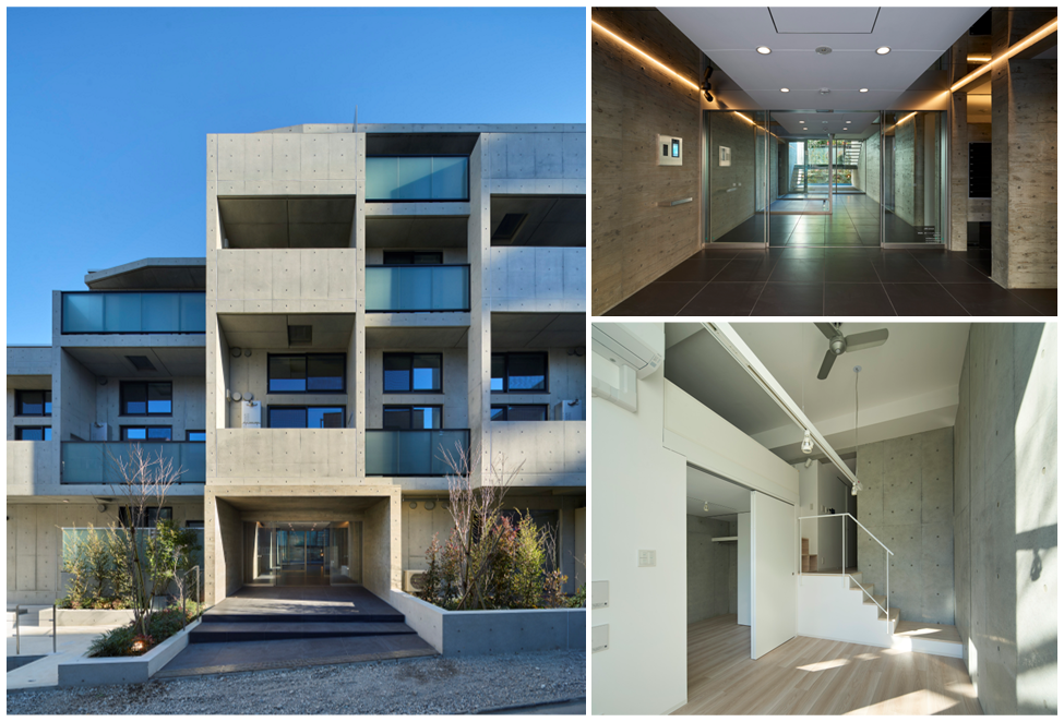 建物は鉄筋コンクリート造の地上4階建で、敷地面積は789.11㎡、延床面積は1479.32㎡です。建物を分断する構成や大きな吹き抜けで周辺の緑を取り込み、壁式構造(柱や梁の出っ張りを抑えやすい構造)で室内空間の使い勝手を高める設計としています。専有面積は26.115〜31.091㎡で、間取りはステューディオ/1DK/1LDKを用意しました。