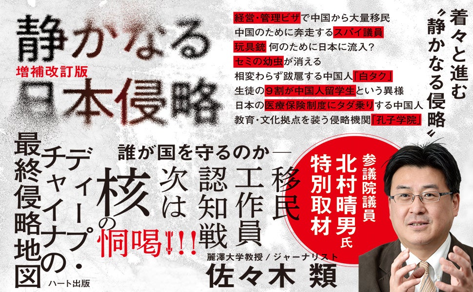 ハート出版(東京都豊島区)は、佐々木類氏の書籍『静かなる日本侵略〈増補改訂版〉』を発売しました。四六判並製の248ページで、本体価格は1600円(税別)、ISBNは978-4-8024-0255-2です。発売日は2026年3月17日としています。