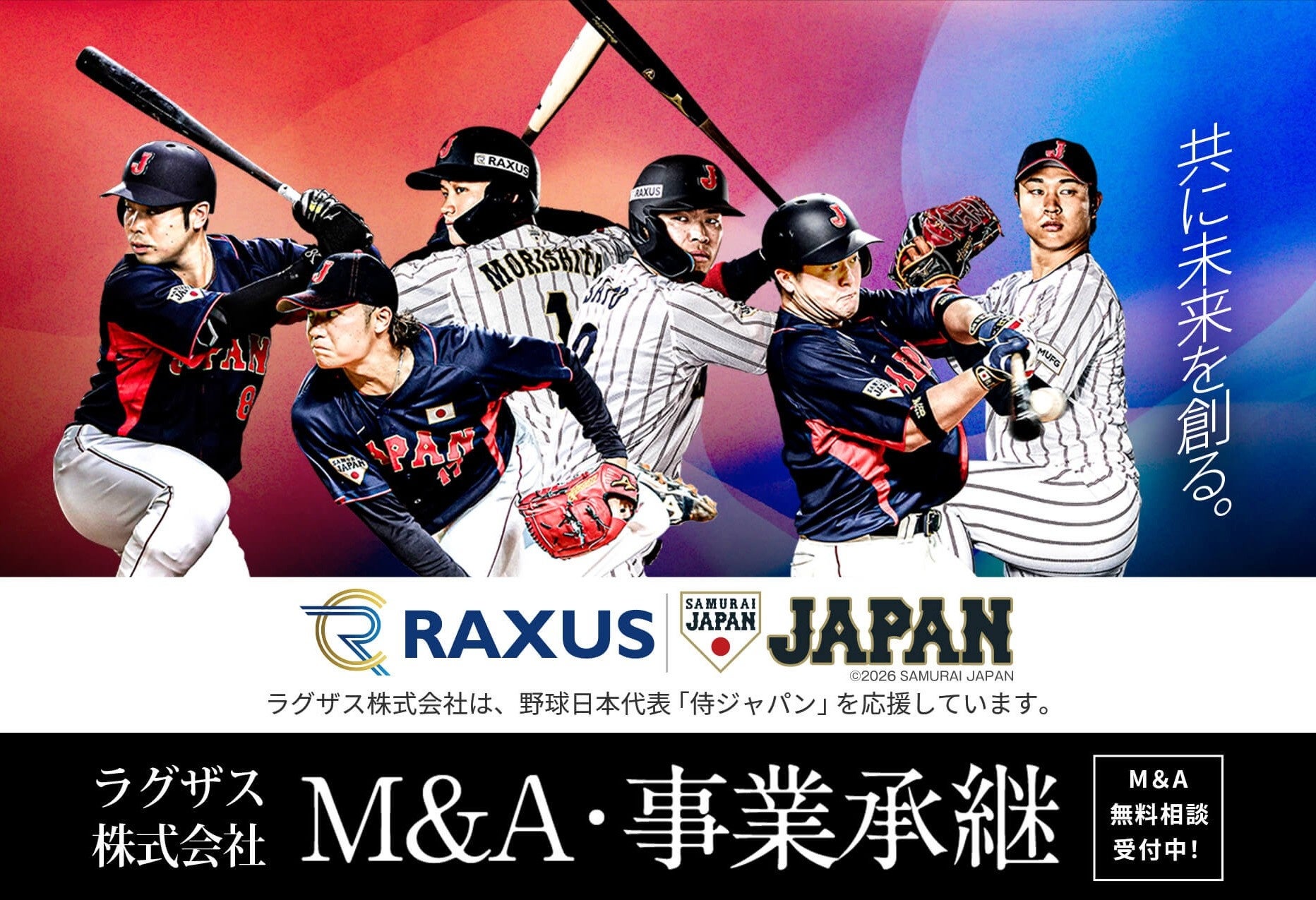 ラグザス株式会社(大阪市北区)は2026年2月12日、侍ジャパンとの協賛イメージ「RAXUS×侍ジャパン」の世界観を反映したM&A募集ページをリニューアルし公開しました。事業承継や成長戦略を検討する企業に向け、M&Aを「未来の選択」として捉える訴求を前面に出しています。