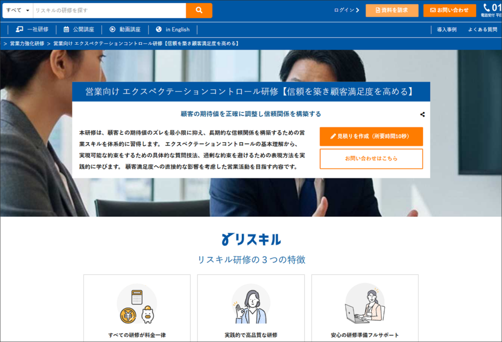 株式会社リスキル(東京・新宿、資本金5000万円、2022年設立)は2025年12月4日、営業担当者向け「エクスペクテーションコントロール(期待値管理)研修」の提供を開始しました。Why質問や条件付き回答、予防線の引き方など実務スキルを体系化し、受注から納品までの認識齟齬を減らしてクレームや次回失注のリスクを低下させる狙いです。プログラムは3章構成で、期待値の設定、会話技法、受注後対応を段階的に学びます。