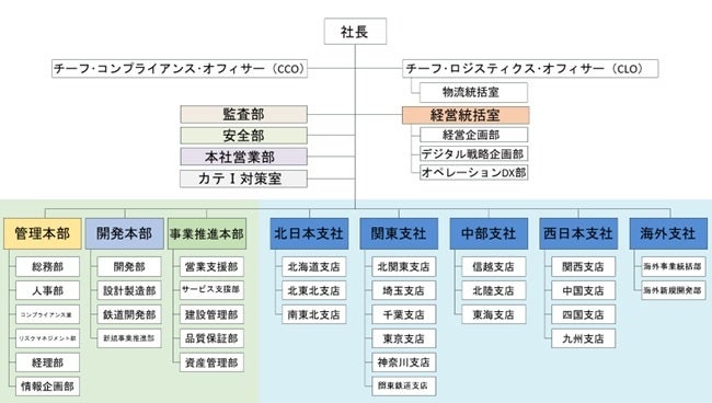 新組織では、経営企画部とDX推進を担うデジタル戦略本部傘下の2部門を統括する「経営統括室」を設立します。DXはデジタル技術で業務やサービスを変革する取り組みです。あわせて物流統括管理者(CLO)を選任し、「物流統括室」を設置して物流機能の統括を明確化します。