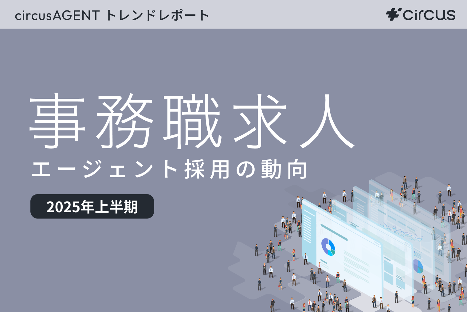 2025年上半期(4〜9月)の事務職求人は、未経験応募可が約9割、紹介手数料の中央値は13.9%、想定年収の中央値は360万円(経験者450万円・未経験者340万円)でした。データは人材紹介プラットフォーム「circusAGENT」に掲載された4,463件(6業界、推薦実績あり)を集計したものです。