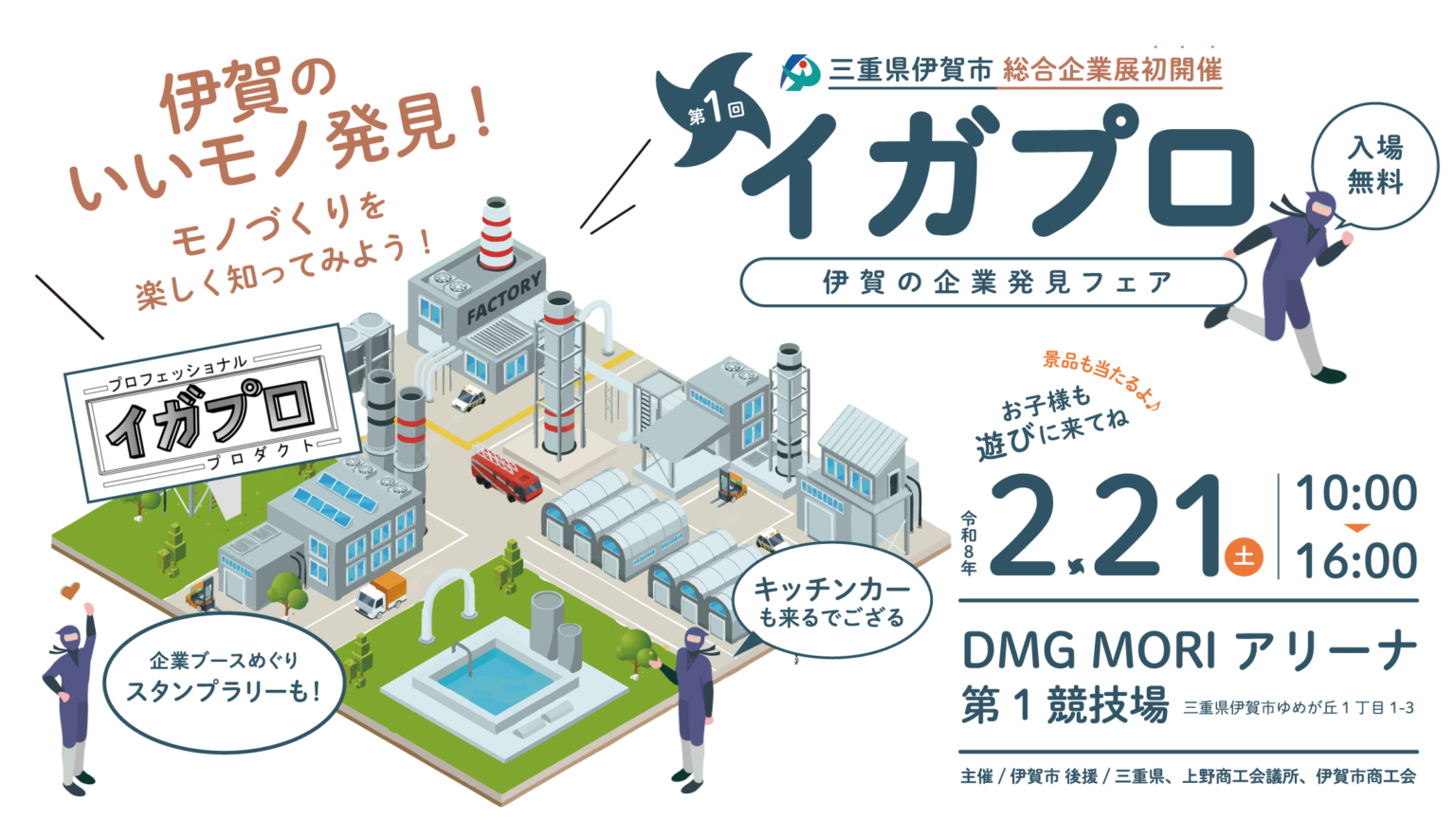 三重県伊賀市は、市内製造業の認知度向上と雇用確保を目的にしたイベント「第1回 イガプロ~伊賀の企業発見フェア~」を2026年2月21日(土)10時~16時に開きます。会場はDMG MORIアリーナ(伊賀市ゆめが丘1-1-3)で、入場は無料です。市内外から子どもから大人まで来場できます。参加企業は24社で、個別ブースで製品展示やものづくり体験を実施します。会場では企業セミナーとして「イガプロ産業セミナー」や、若者会議による「伊賀で働くリアル」をテーマにした企画も予定します。あわせて伊賀の物産販売やキッチンカー出店を含む市PRコーナー、三重大学が相談を受ける産学官連携コーナーも設けます。「イガプロ」は「伊賀」と「プロダクト」「プロフェッショナル」などの「プロ」を組み合わせた造語で、市内に技術力の高い製造企業が多い一方、働く場の魅力が十分伝わっていない課題を背景に企画したといいます。市は求職者への周知だけでなく、参加企業同士の交流や新たなビジネス連携・情報交換の機会創出も狙うとしています。今後は来場者数や企業の連携事例などの成果を踏まえ、継続開催や支援策の拡充が検討される可能性があります。