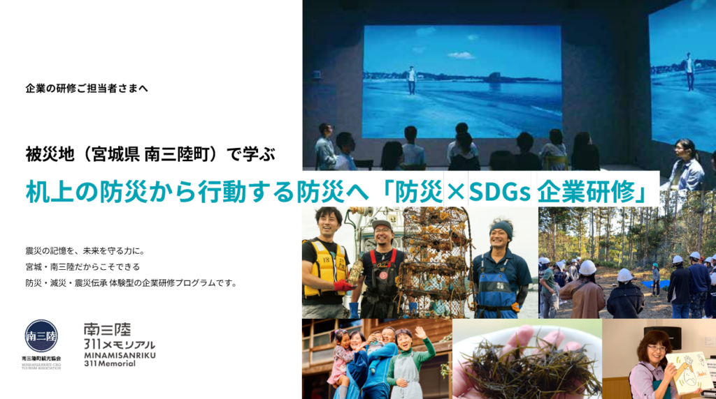 南三陸町観光協会が、2026年1月28〜30日に東京ビッグサイト東ホールで開かれる「防災産業展2026」に初出展します。ブースは7B-70。企業向け「防災×SDGs研修」を中心に、2011年以降に累計3,400団体・14万人超へ提供した防災プログラムを紹介します。