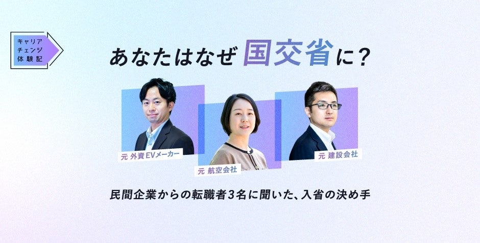 エン(東京都新宿区)は2026年2月12日、国土交通省の「総合職(事務系)」について、同社の『ソーシャルインパクト採用プロジェクト』で公募を開始しました。応募受付は『ミドルの転職』『AMBI』『エン転職』内で2月12日~3月11日です。あわせて募集特設ページと、民間出身者3名の特別インタビュー記事を公開しました。