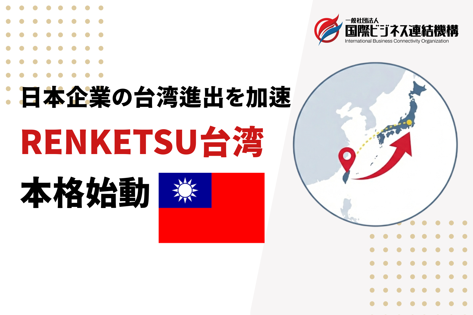一般社団法人国際ビジネス連結機構(東京都港区)は2026年1月、台湾支部「RENKETSU台湾」を設立し活動を始めたと、2026年3月3日19時36分に明らかにしました。台湾での拠点整備により、日本企業の台湾市場開拓と中華圏展開の足がかりをつくります。
