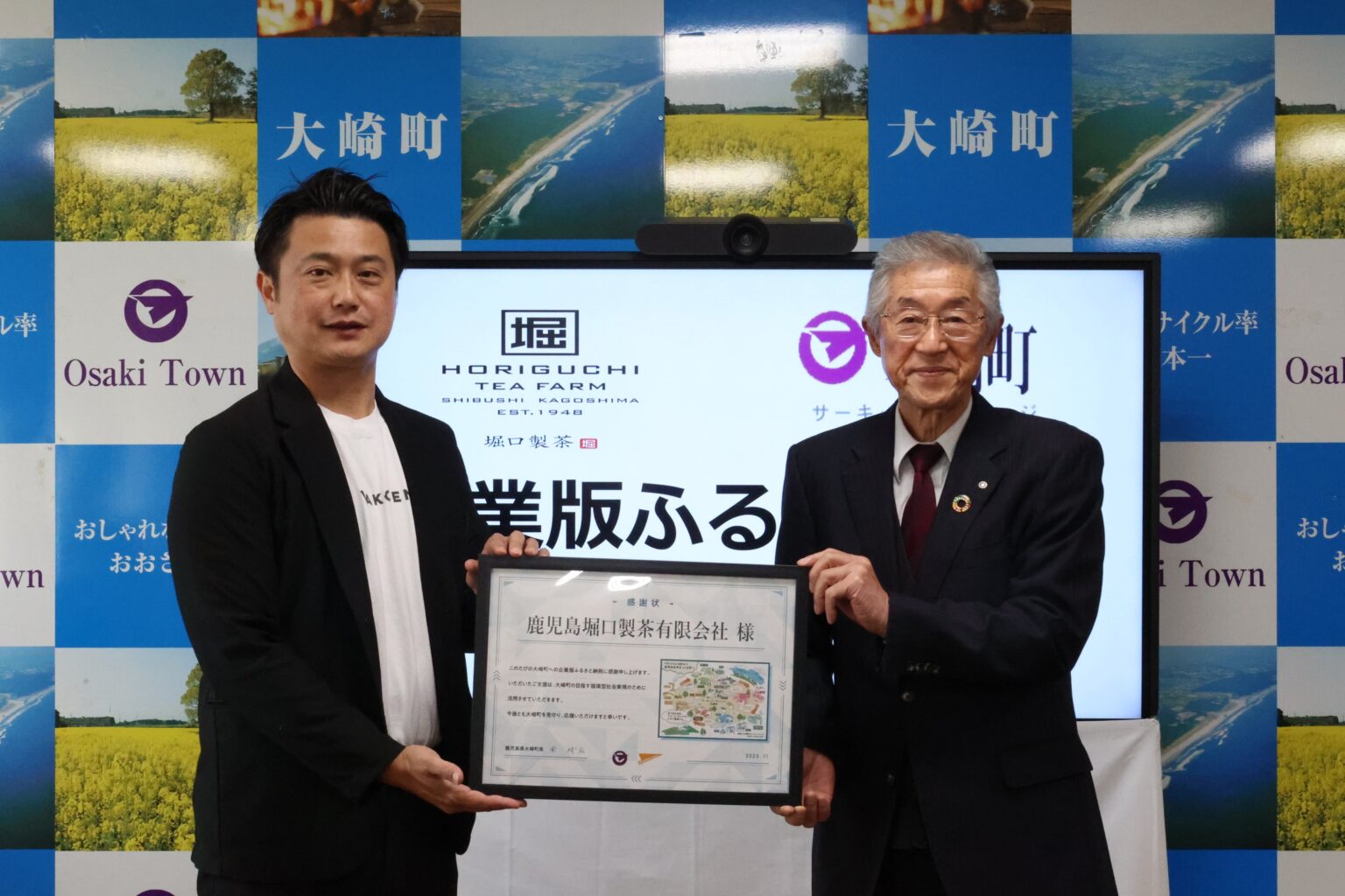 鹿児島県大崎町は、鹿児島堀口製茶有限会社(鹿児島県志布志市)から企業版ふるさと納税を活用した寄附を受け、「大崎町SDGs推進事業」に充てると発表しました。寄附日は2025年11月12日で、感謝状贈呈式は令和7年12月18日に大崎町本庁で実施しました。