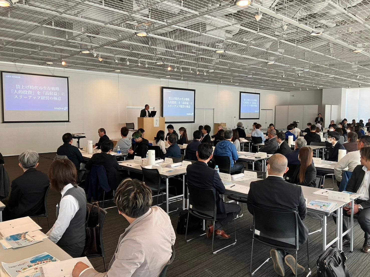 2/26山梨県立図書館でイマジナがなぜ150名の経営者を熱狂させたのか?「賃上げ」をコストから投資へ変えるスリーアップ経営の極意を公開