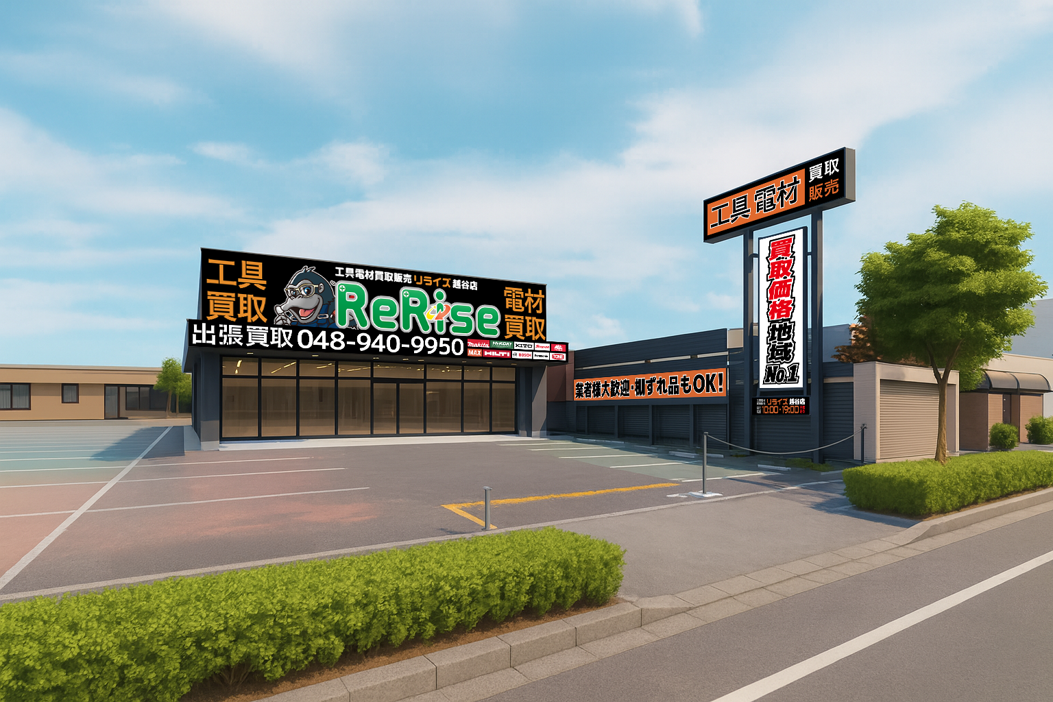工具・電材のリユース店「工具電材買取販売リライズ」は、埼玉県越谷市大里に「リライズ越谷店」を2026年1月7日(水)に開業します。開業に先立ち、2025年12月20日(土)からは買取対応のみのプレオープンを実施し、対象期間は12月20日〜29日、2026年1月4日〜6日です。店舗は敷地面積370坪で、駐車場は30台以上を備えます。