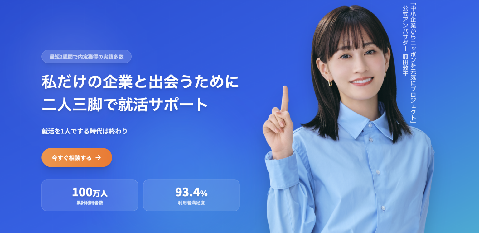 就活の早期化と情報の多様化で「何から始めればいいか分からない」「自分に合う企業が見つからない」と悩む学生が増える中、専任エージェントの伴走支援の内容を直感的に伝える狙いです。内定までのロードマップとして、最短2週間や平均面談10回以上など目安も明示しました。