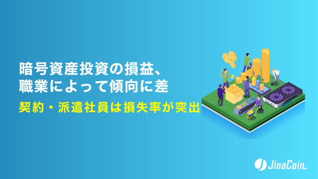 調査は2026年2月18日〜25日にインターネットで実施し、暗号資産の保有状況と損益を職業別に集計しました。会社員(正社員)は187名のうち利益率66.7%、損失率17.7%だった一方、会社員(契約・派遣社員)は14名のうち損失率42.9%、利益率28.6%と損失側に偏りました。