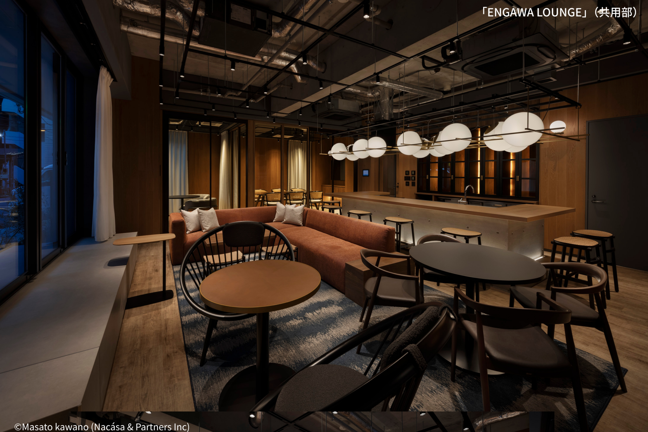 共用施設:シェアラウンジ「ENGAWA LOUNGE」、ミーティングブース(完全予約制)、ルーフテラス「IRORI BAR」