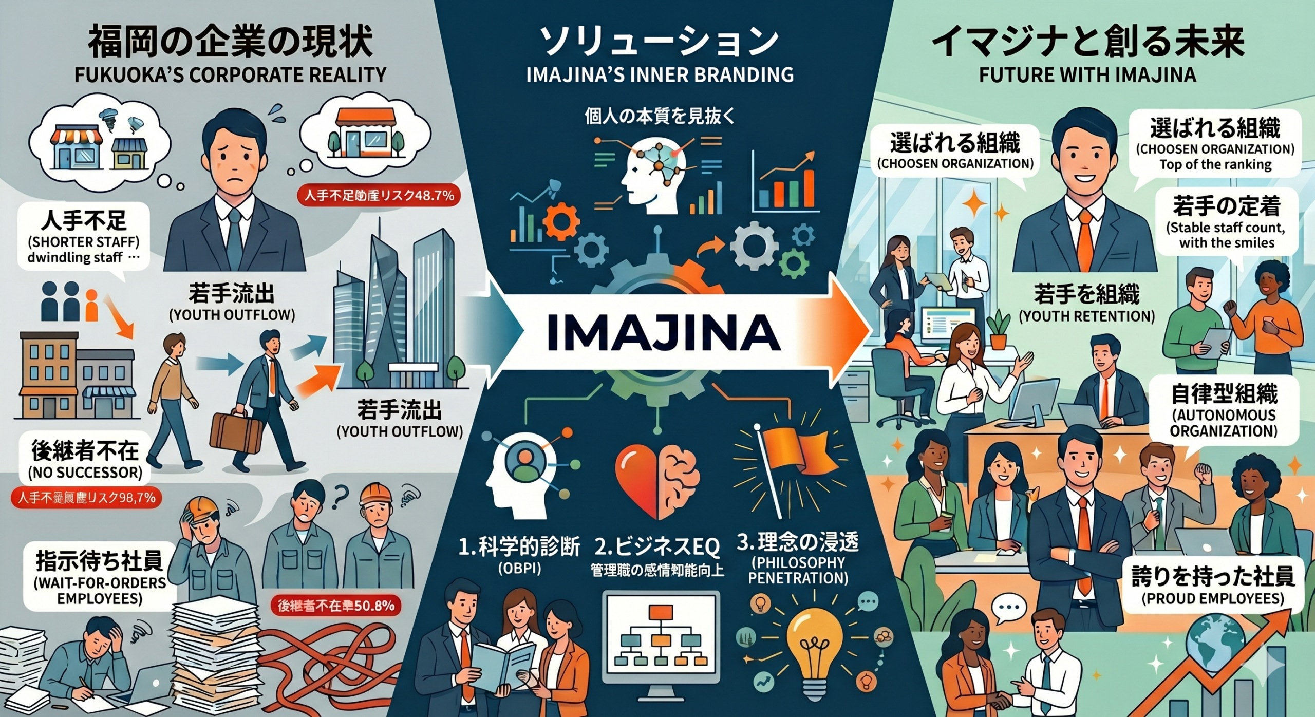 ブランド支援を手がけるイマジナ(東京都千代田区)は2026年6月15日、福岡市博多区のアクア博多で「経営者のためのインナーブランディングセミナー」を開き、英ケンブリッジ大学サイコメトリクスセンターと提携した診断ツール「OBPI」を使う組織変革手法を紹介します。参加費は無料で、対象は経営者・役員・人事責任者です。
