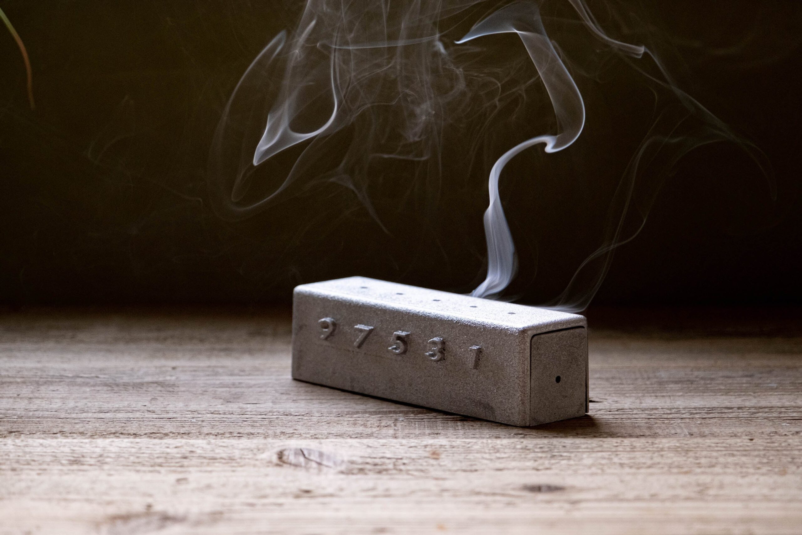 商品は蓋付き構造で点火部が外から見えにくく、「火が露出しない」設計により安全性とデザイン性の両立を図っています。スティックタイプのお香専用ですが、台湾で一般的な線香にも使用できるとしています。上部の穴から煙が立ち上がる構造に加え、燃焼の進み具合(残量の目安)を「9〜1」の数字で示し、時間の経過を見える形にする工夫も特徴です。2024年の福岡デザインアワードで金賞を受賞しました。