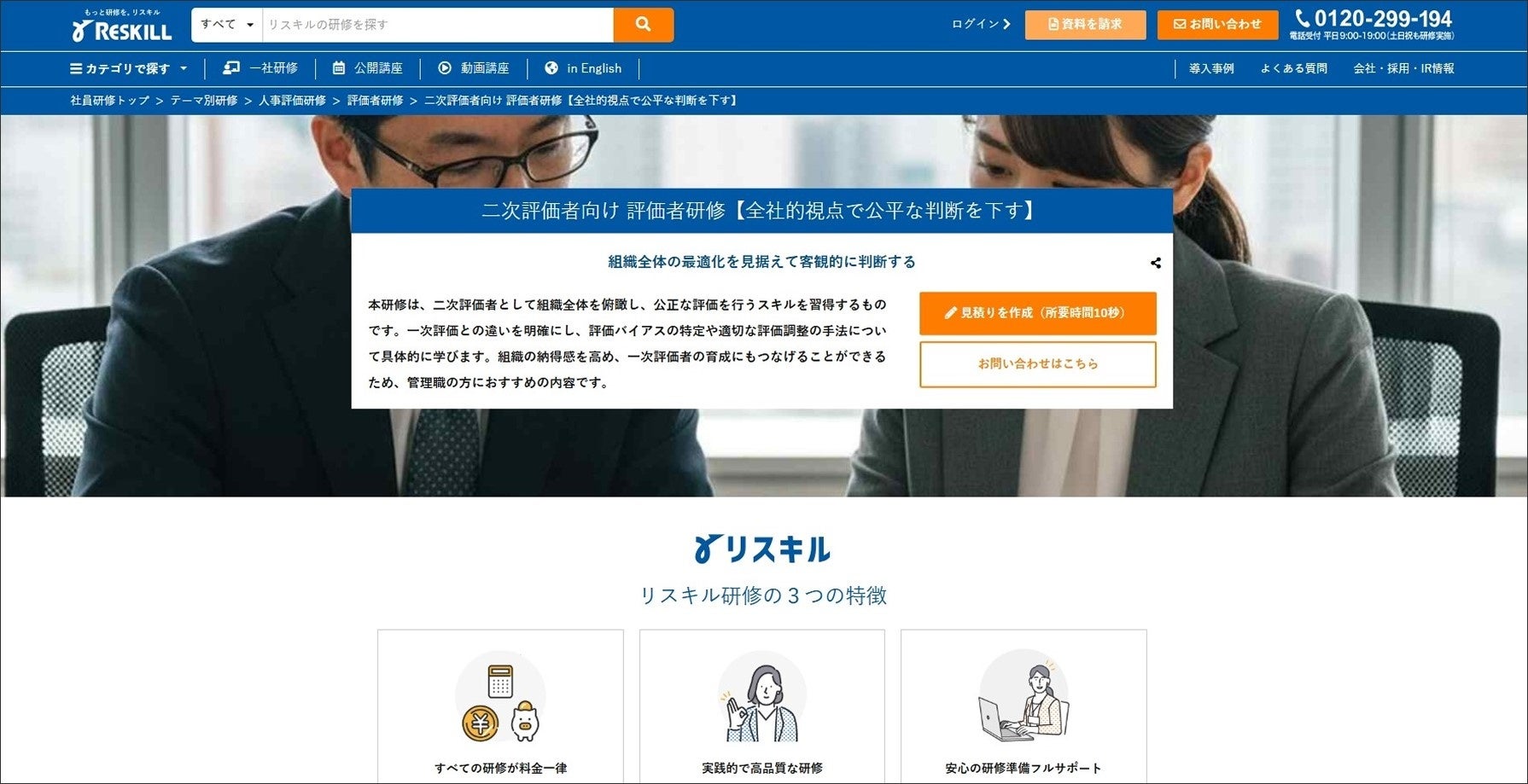 株式会社リスキル(東京都新宿区)は2026年1月、管理職を対象に新研修「二次評価者向け 評価者研修」の提供を始めました。一次評価に入り込みやすい主観的な偏り(評価バイアス)を見抜き、部門間でばらつきが出やすい評価基準や評価分布を調整して、全社視点で公正な最終評価につなげるスキルの習得を狙います。人事評価の重要性が高まる一方、一次評価者の主観により評価が偏ったり、部門ごとに基準や分布が異なって納得感を損なったりする課題が指摘されます。研修では一次評価と二次評価の役割の違いを整理し、二次評価者に求められる「組織全体の最適化」の観点を明確化します。内容は、ハロー効果や中心化傾向、寛大化・厳格化傾向など代表的なバイアスの理解に加え、評価項目間の整合性や過去データ比較など客観情報を使った特定・修正手法を扱います。さらに評価会議を想定し、根拠提示や代替案提示、事実確認を通じた合意形成をロールプレイで学びます。今後は、評価の透明性と一貫性を高める研修需要の拡大に合わせ、各社の評価運用における二次評価者の役割が一段と重要になりそうです。