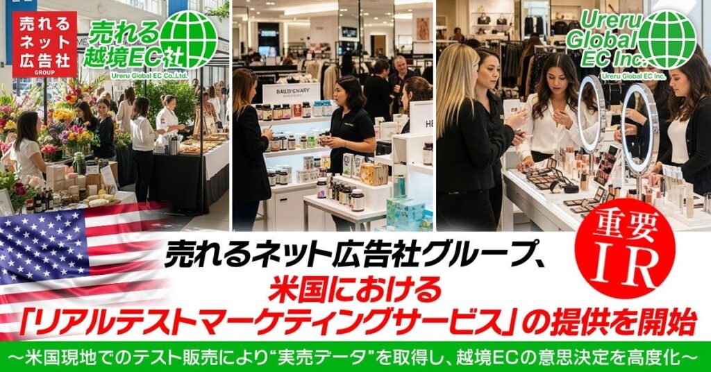 売れるネット広告社グループ(東証グロース:9235)の連結子会社・売れる越境EC社は1月16日、米国(主にカリフォルニア州)で日本企業の商品・ブランドを対象に、現地で実際に販売して購買データを集める「リアルテストマーケティングサービス」を始めました。オンライン指標だけでは把握しにくい需要や価格受容性を、実売データで検証するのが狙いです。テスト販売の対象都市はロサンゼルス、ラスベガス、サンフランシスコ、サンノゼなどで、価格設定、陳列、販売導線、訴求コピー、パッケージの受け止められ方といった要素を販売現場で確認します。運用は米国法人Ureru Global EC Inc.と連携し、現地パートナー調整や拠点確保、オペレーション管理まで担うとしています。得られたデータを起点に、広告運用支援やD2C構築支援、AI分析などグループ内サービスとつなげ、検証から拡大までの一貫支援を想定します。会社側は、短期的にカリフォルニア州中心で実績を積み、将来的に全米、欧州・アジアへ拡張も視野に入れる方針です。業績影響は現時点で軽微としつつ、2026年7月期の連結業績へのプラス寄与を見込むとしています。
