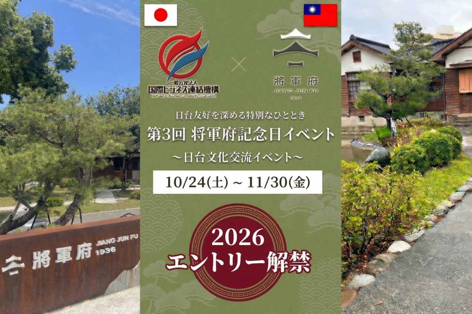国際ビジネス連結機構(東京都港区)は2026年10月24日〜11月30日に台湾・花蓮市の「花蓮将軍府1936」で開く「第3回 将軍府記念日イベント」に向け、日本企業のPOPUP出展募集を始めました。参加費は50万円(税別)で、会員企業は15%割引の42.5万円です。