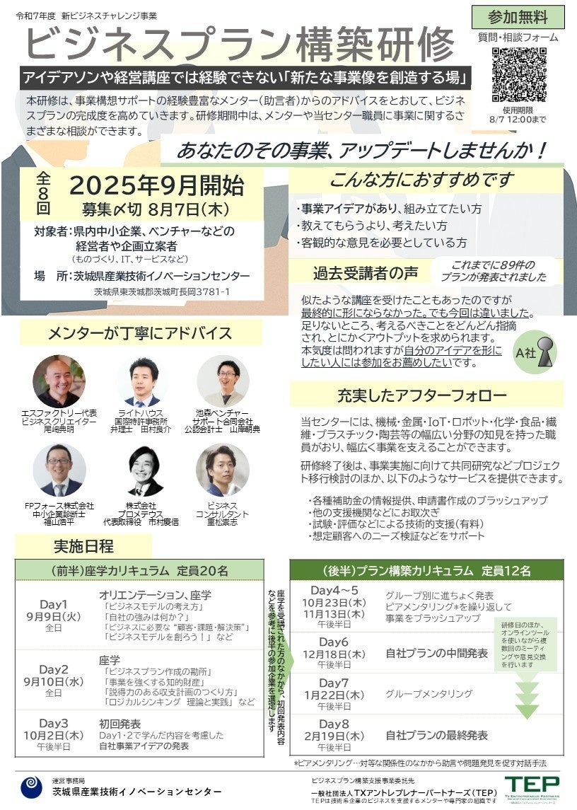 茨城県産業技術イノベーションセンターは2026年2月19日、2025年度「ビジネスプラン構築研修」の最終発表会を同センター(茨城県茨城町)で開き、発表した10社から最優秀プラン1社と優秀プラン2社を決めました。研修は約半年にわたり実施されました。