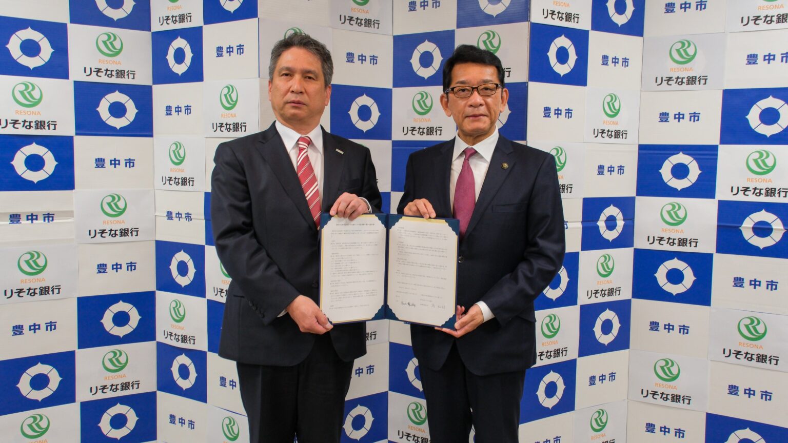 豊中市は2026年1月21日、りそな銀行(大阪市中央区)と、地域課題の解決と持続可能な地域社会の実現に向けた包括連携協定を結びました。同日15時15分から15時45分にかけて、豊中市役所で締結式が行われました。