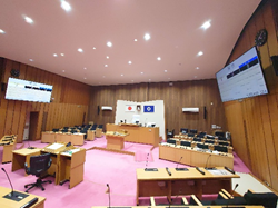 傍聴環境も更新します。傍聴者用モニターは2台を65インチに大型化し、傍聴席には音声字幕表示モニター(43インチ)を新設して質問と答弁をリアルタイムで文字表示します。聴覚障害者や難聴の高齢者などにも内容が伝わりやすいことを狙います。
