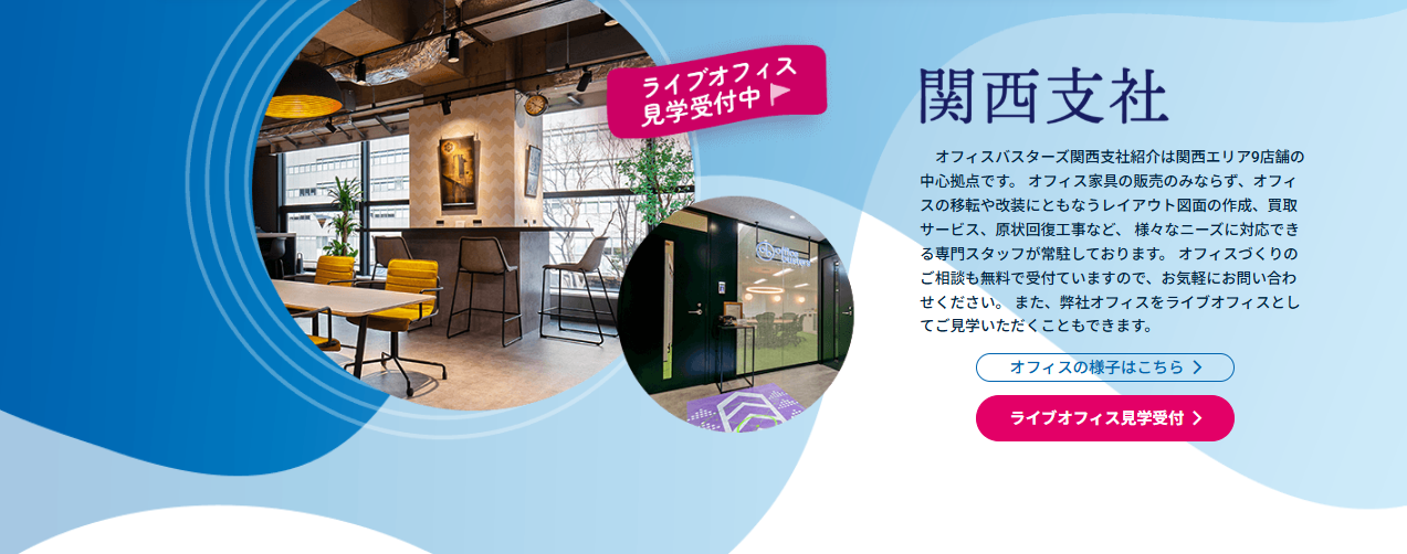 関西支社ライブオフィス見学 https://www.officebusters.com/facility/branch/liveoffice-kansai/