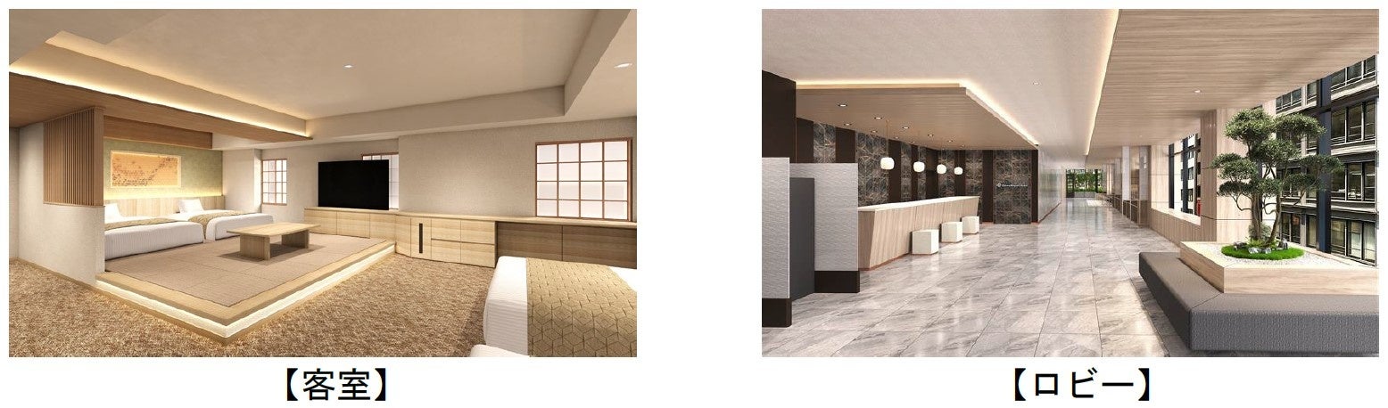 今回の改装は「CROSS OVER」をコンセプトに、和洋の要素を融合したデザインへ改めます。全客室で内装を刷新し、ベッドはシモンズ製を導入します。