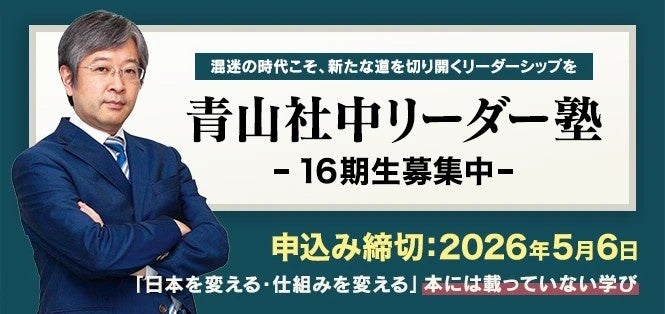 青山社中(東京都港区南青山)は2月16日、2026年度「青山社中リーダー塾」を開講し、第16期生の募集受付を始めました。定員は12名程度で、学費は5年分合計110万円(税込、初年度55万円を2回払い)です。説明会と塾生交流会は3月から4月に計4回、青山社中会議室で実施し、状況によりオンラインも併用します。