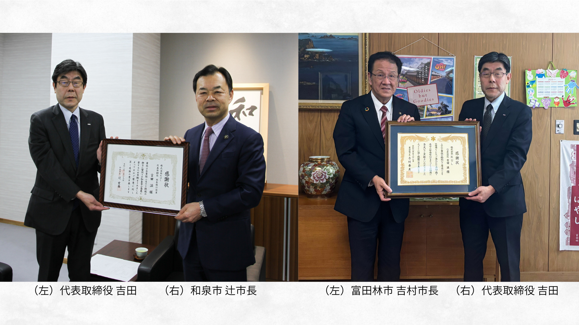 和泉市向けは企業版ふるさと納税で「文化・観光振興」を支援し、同社には2026年1月19日に感謝状が贈られています。富田林市向けは市のクラウドファンディングを通じ、「防災・減災対策」に充当され、同社は良質なトイレを「発災から3日以内」に確保する目標に賛同しました。