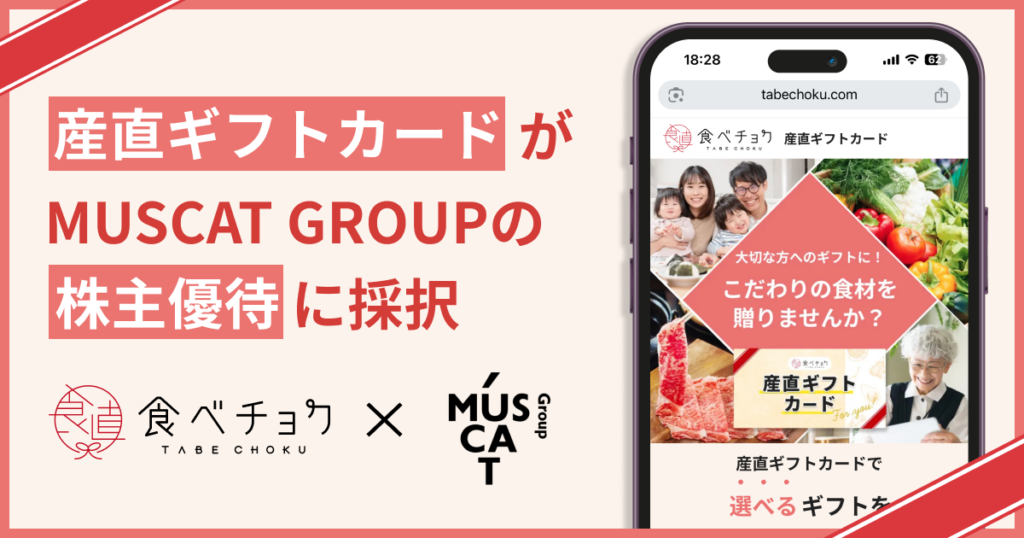 株式会社ビビッドガーデン(東京都港区)は、株式会社MUSCAT GROUPの新設株主優待特典として、食べチョクのデジタルギフト「産直ギフトカード」が採用されたと発表しました。株主は食べチョク上の約5万点から食材を選んで購入でき、券種は3,000円・5,000円・10,000円、有効期限は6ヶ月です。初回基準日は2026年9月末です。