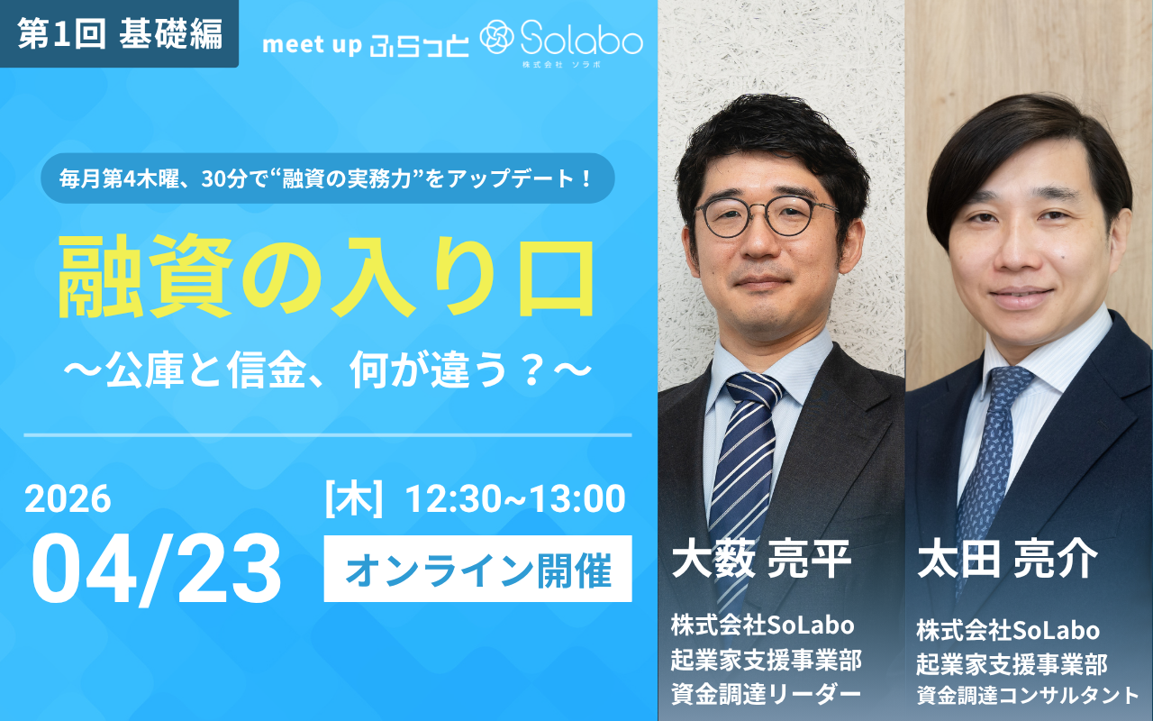 株式会社SoLabo(東京都渋谷区)は、融資教育プログラム「融資の入り口から実践まで:30分クイックセミナー」を2026年4月23日から開始します。オンラインのライブ配信で、毎月第4木曜日12:30〜13:00に開催し、参加費は無料です。