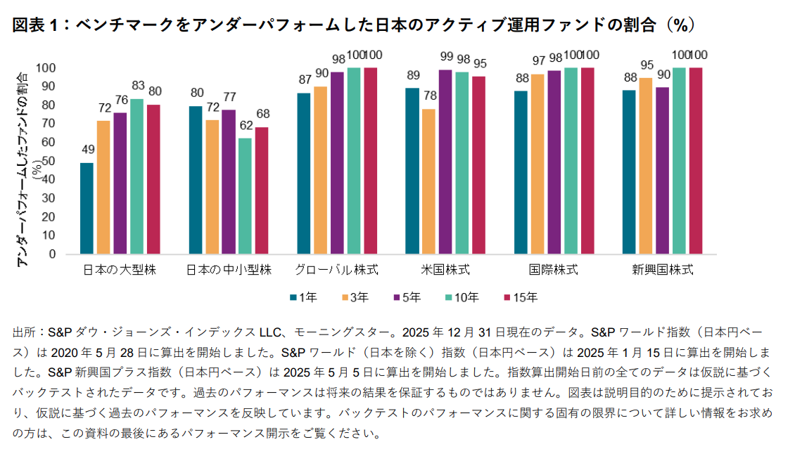 S&P DJIのSPIVA日本スコアカード:2025年、日本の大型株ファンドの49%がベンチマークをアンダーパフォーム