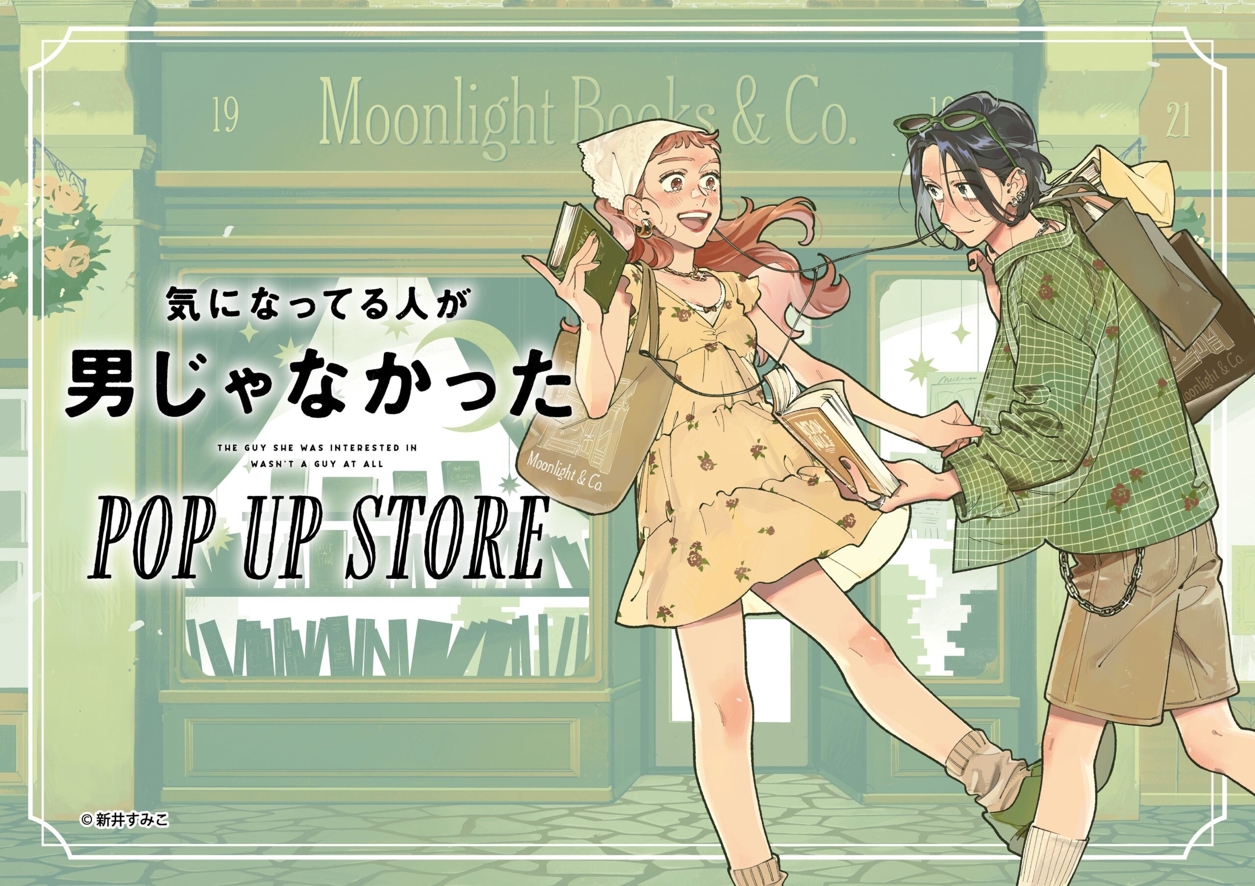 コミック『気になってる人が男じゃなかった』のPOP UP STOREが2026年4月1日〜19日、全国の書店6店舗で開かれます。新規描き下ろしイラストを使ったグッズを先行販売し、1会計2,500円(税込)ごとに特製ステッカー(全8種)をランダムで配布します。