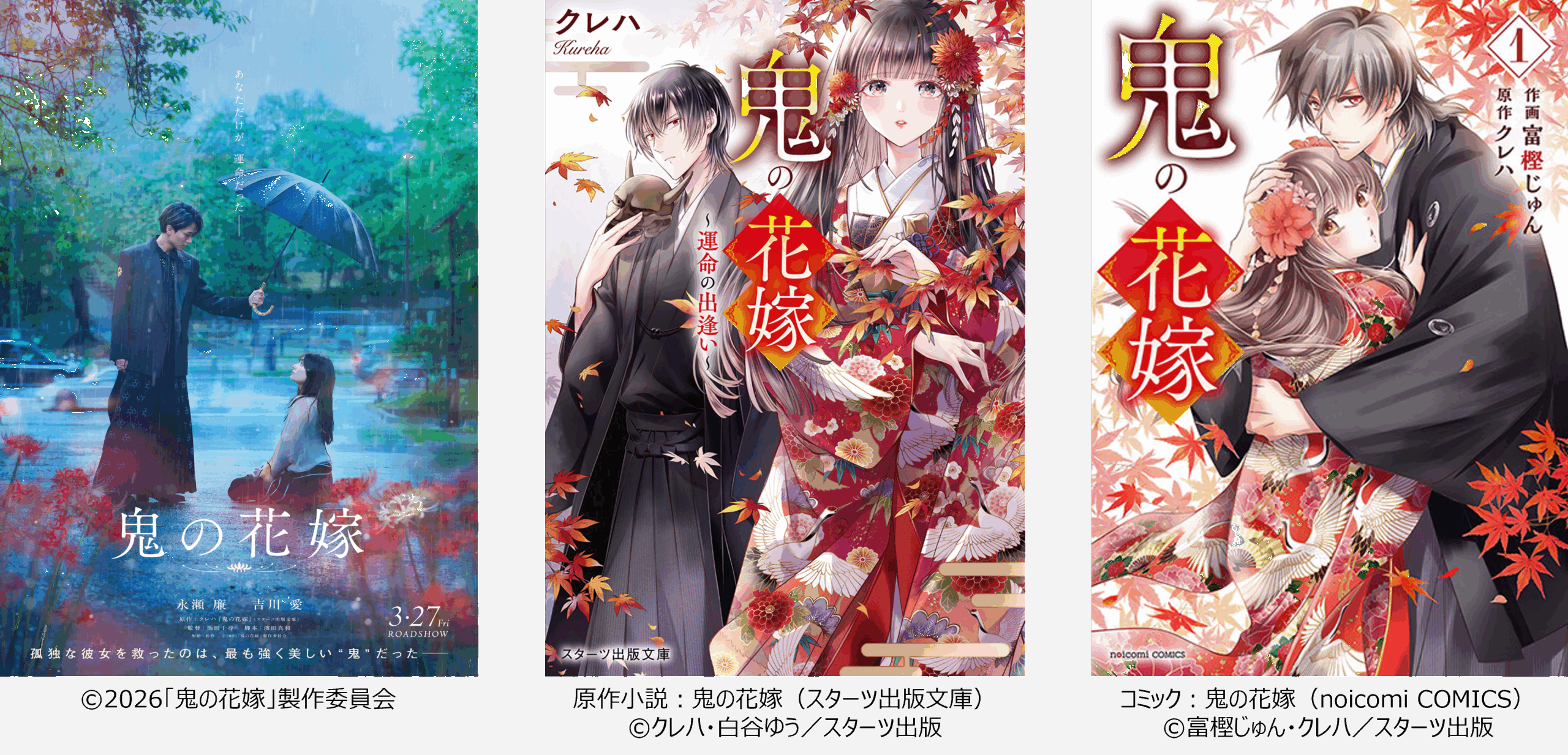 人気作『鬼の花嫁』が実写映画となり、2026年3月27日(金)に全国公開されます。W主演は永瀬廉(鬼龍院玲夜役)と吉川愛(東雲柚子役)。監督は池田千尋、脚本は濱田真和。配給は松竹、製作は「鬼の花嫁」製作委員会です。原作はクレハの同名小説(スターツ出版文庫)で、映像化により世界観の拡がりが期待されます。