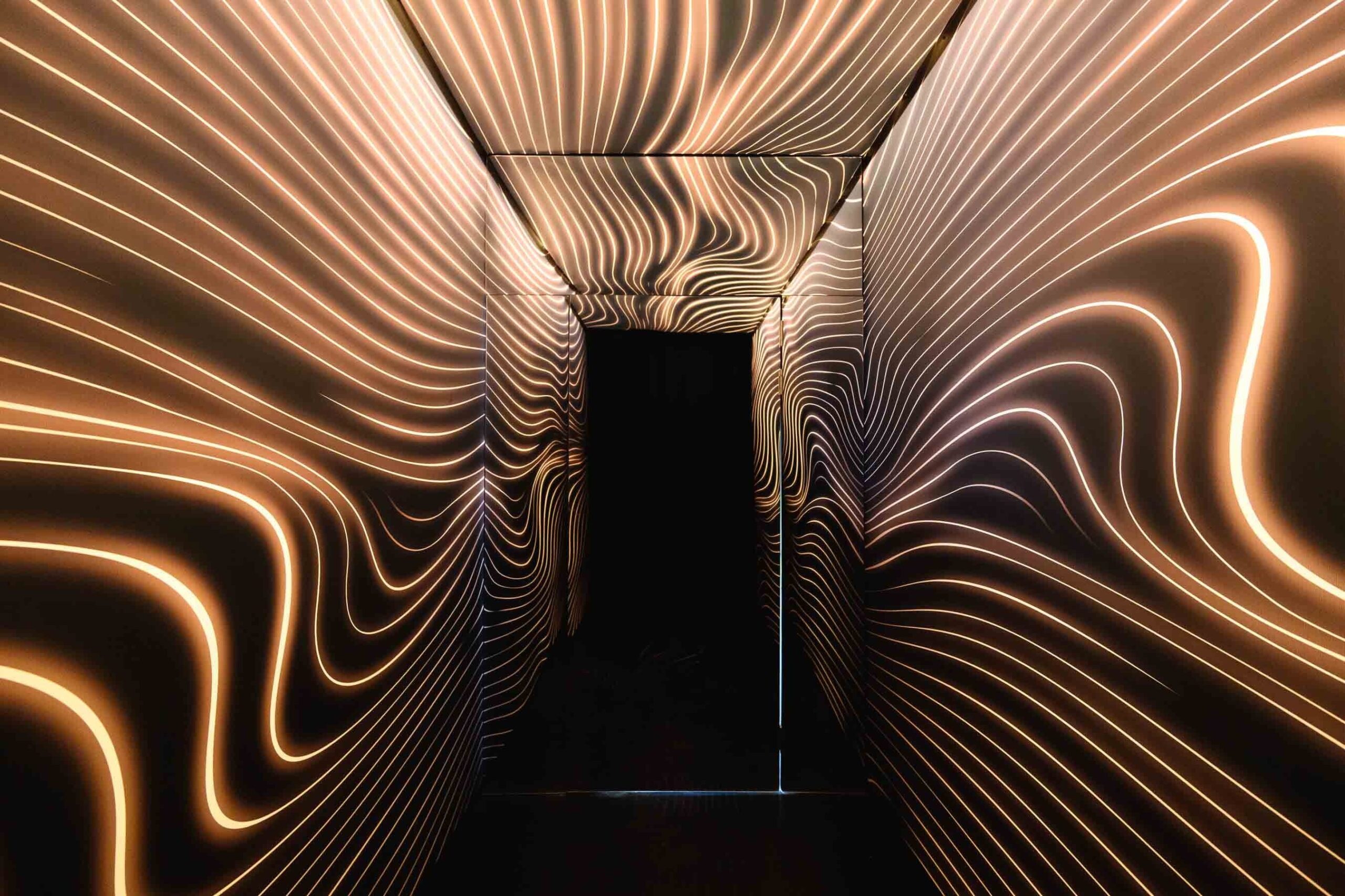 3階ショールームでグッズの雰囲気を確認し、2階では「How It’s Done」「Soda Pop」などOSTをテーマにした展示・体験ゾーンで世界観に没入、1階で商品の受取と購入後のキーリングやワッペンのカスタマイズを経て、最終セクション「ゴールデンステージ」で物語の核となる「混文」を完成させる導線です。