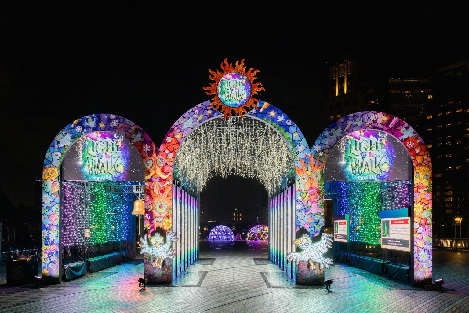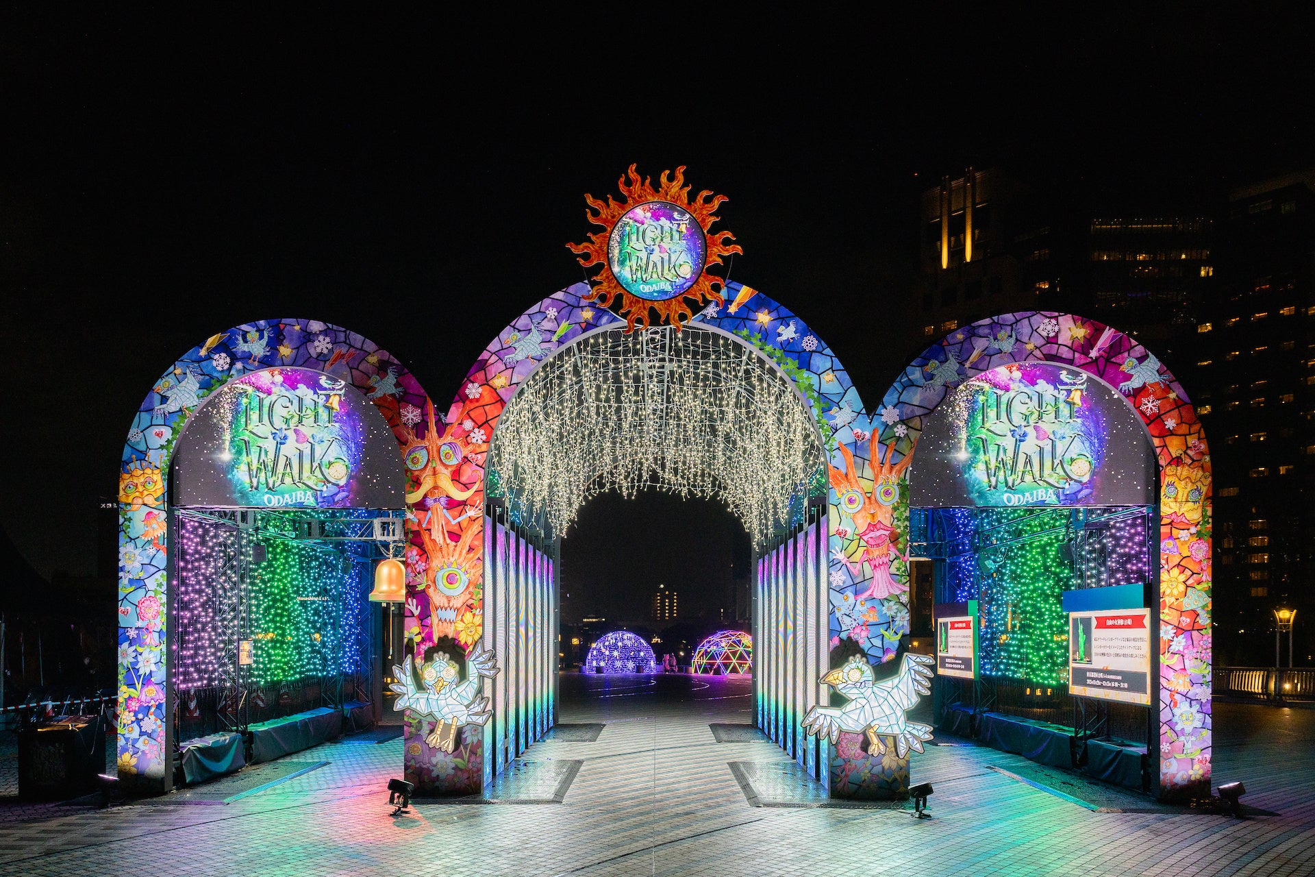 臨海副都心(お台場)で開催中のイルミネーション「LIGHT WALK ODAIBA」が12月14日からホリデー仕様の特別演出に切り替わりました。会場はシンボルプロムナード公園周辺で、約2kmの回遊ルート上に18か所の光のスポットを設置し、点灯は16:00~21:30、期間は12月4日~12月27日です。メイン会場の夢の大橋では「SEAGULL CLOCK」でクリスマス限定映像を上映し、テーマソング「スノーサプライズ」と連動した音と光の演出を実施します。14日にはANREALAGEとHERALBONYのコラボによる映像を、上空に設置した縦9m×横6mのLEDビジョンで投影する上映会も行われ、当日は3回実施されました。東京都港湾局が事務局を担い、来訪者の回遊を促すまちづくりの取り組みとして展開しており、今後はSNSなどで最新情報を順次発信する予定です。