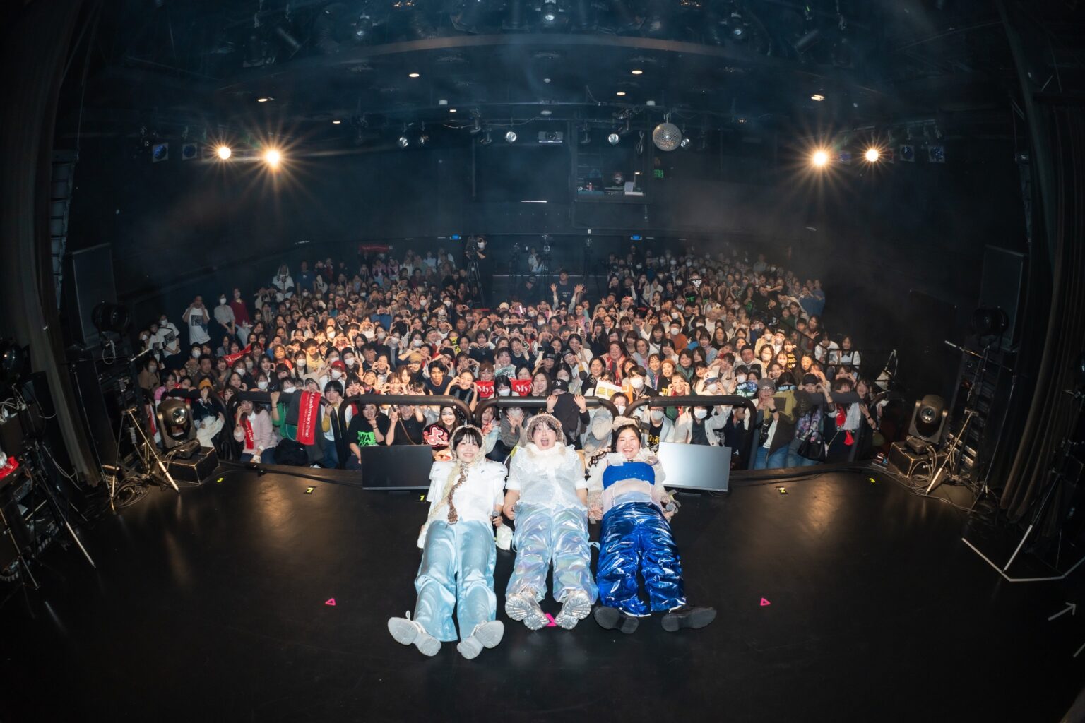 ライブでは、自身の楽曲に加えカバー曲も交え、HIPHOPを軸にした歌とダンスを展開。10月リリースの「おまんじゅうこわい」では会場全体で振り付けを楽しむ一体感が生まれました。中盤にはそれぞれがソロでカバー曲を歌い、ハイトーンボイスや高速ラップなど三者三様の個性と歌唱力を強調。抽選で選ばれたファンのためだけに一曲を届ける企画も行い、笑いと真剣さが交錯するステージとなりました。
