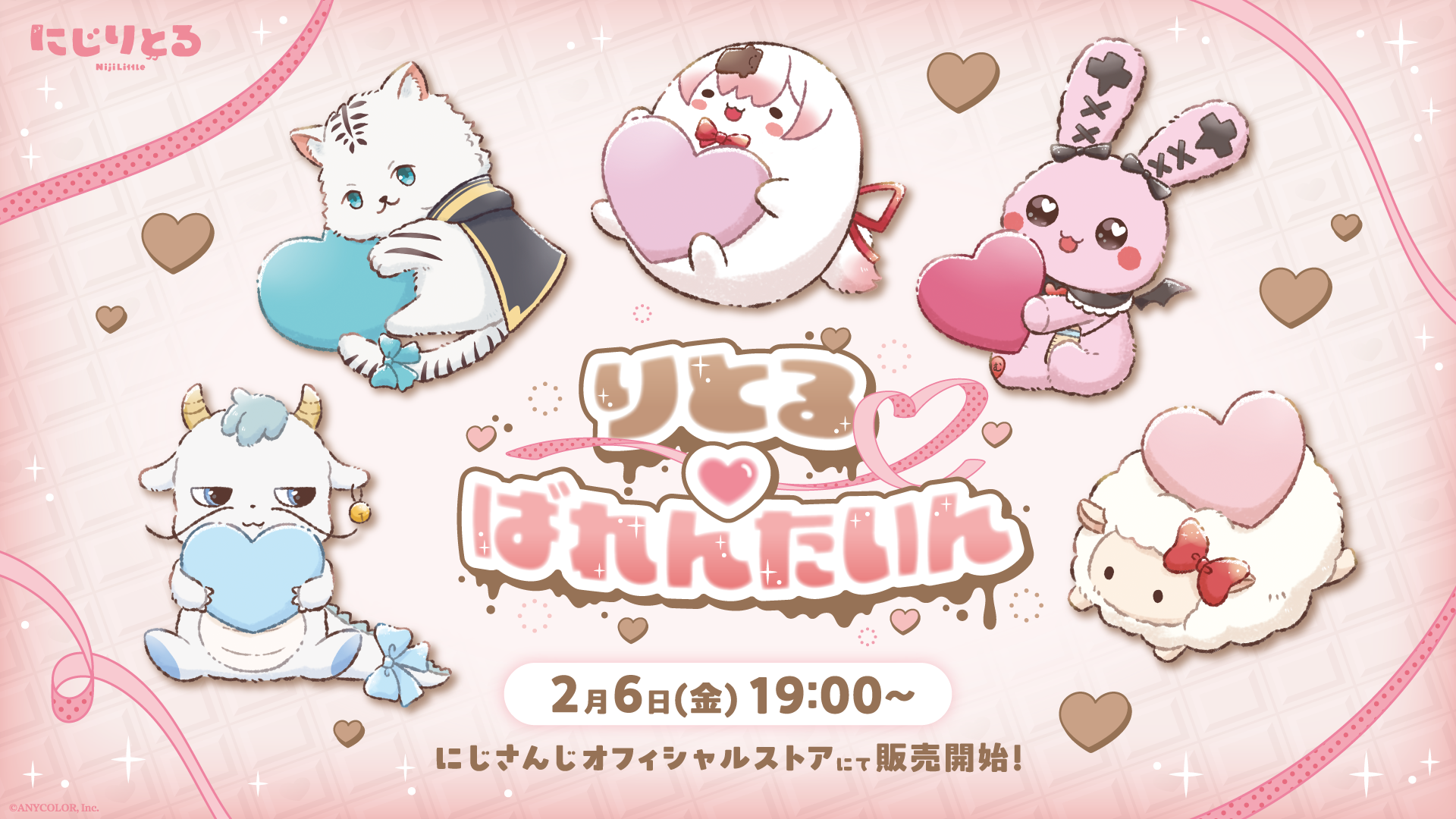 ANYCOLORは、VTuberグループ「にじさんじ」の「りとるばれんたいん」グッズを、2026年2月6日(金)19時からにじさんじオフィシャルストアで販売します。参加ライバーは天宮こころ、アルス・アルマル、椎名唯華、魔界ノりりむ、ヤン ナリの5名です。発送は2026年2月中旬以降を予定しています。