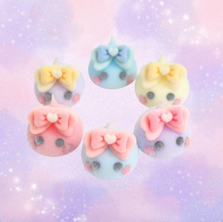 新作は、表面に特殊なフロッキー加工(繊維を付着させて起毛させる加工)を施し、見た目はふわふわ、触ると“ぷにぷに”という触感を狙った点が特徴です。素材はシリコン・プラスチックなどで、サイズは横約2.5cmのデカサイズとして展開します。