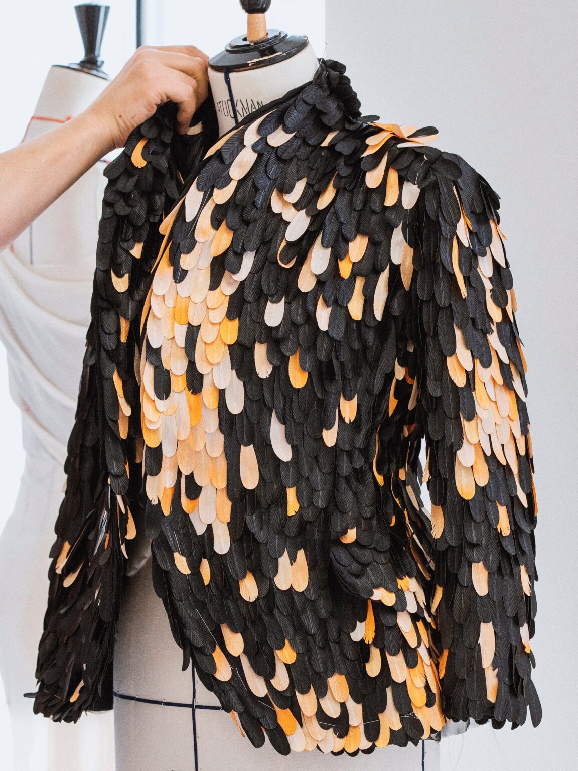 対象の装いは、ジョナサン・アンダーソンが手がけたブラックのスパンコール刺繍トップス、シルクのフェザージャケット、ウール&シルクのパンツで構成されます。サヴォワールフェールは職人技や制作工程を指し、素材選定や装飾の作り込みなど舞台裏の要素が焦点になります。