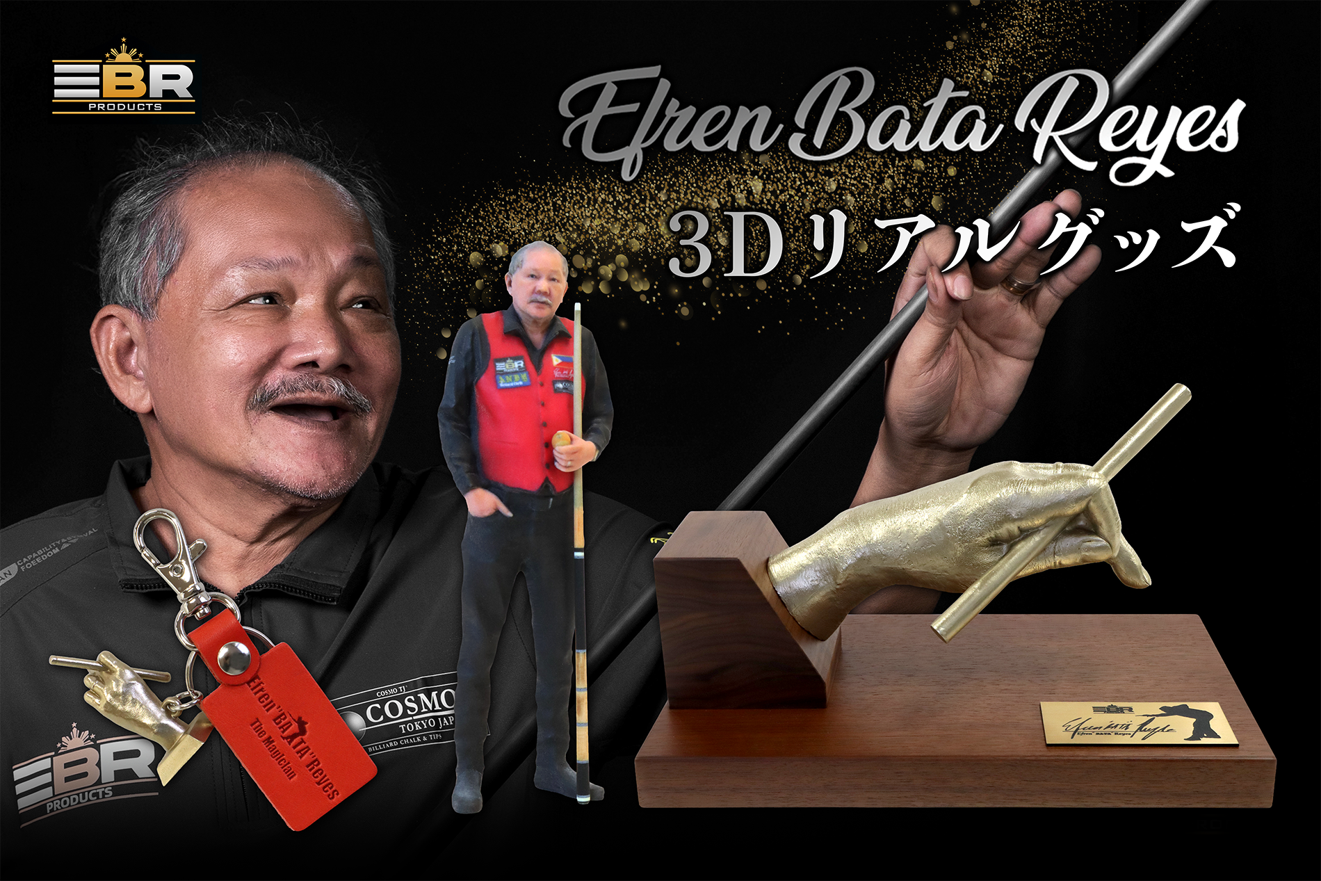 ビリヤード界のレジェンド、エフレン・レイズ氏を立体化した3商品が、2026年1月8日に日本国内で発売されます。株式会社キャステム(広島県福山市)が運営するブランド「History Maker」の企画で、国内の正規代理店「EBR Products」が販売を担います。ラインアップはフルカラー3Dプリントのフィギュア1種と、本人の手から直接型取りした手型モデル2種の計3種です。価格はフィギュアが3万5200円、実寸大(1/1)の手型モデルが16万5000円、手型キーホルダーが3300円(いずれも税込)です。フィギュアは3Dスキャンとフルカラー3Dプリンターで制作し、キューの質感など細部表現を重視したとしています。1/1手型モデルは皺や指先の形状まで再現する設計で、コレクター需要を見込みます。キャステムは精密鋳造や金属粉末射出成形(MIM)などの技術を医療・航空宇宙分野向け部品にも展開してきた企業で、人物や身体表現を商品化する取り組みを継続しています。今後は著名選手の周辺アイテムや造形バリエーションの拡充が進むかが焦点です。