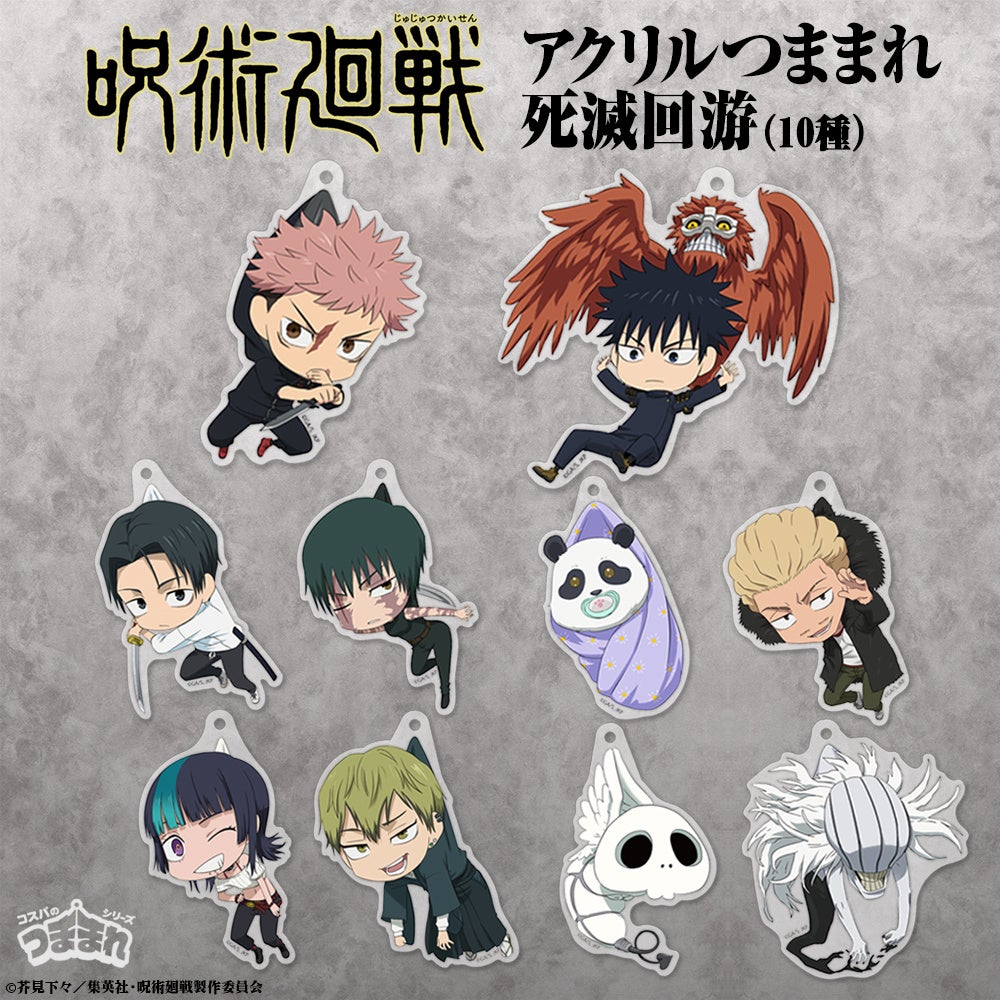 株式会社コスパは2026年3月4日、TVアニメ『呪術廻戦』の新グッズを発表しました。アクリルつままれ(全10種、各880円)は、3月28日・29日に東京ビッグサイトで開かれるAnimeJapan 2026のコスパブース(東7ホールA-34)で先行販売します。
