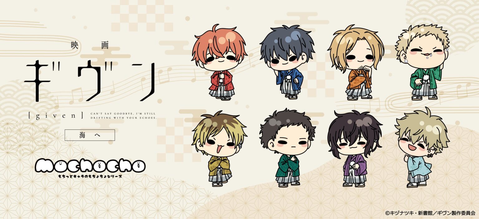 シンクイノベーション(愛知県名古屋市)は2026年3月11日12時から、販売サイト「vvit.jp」で『映画 ギヴン 海へ』グッズの予約販売を始めます。シリーズは【mochocho】で、テーマは「和装」のミニキャラ描き起こしです。出荷は2026年6月上旬を予定しています。