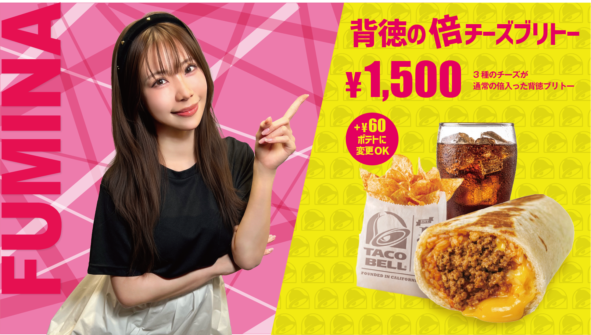 タコベルは3月12日から4月30日まで、鈴木ふみ奈さん監修「背徳の倍チーズブリトー」と風吹ケイさん監修「覚醒の旨辛ビーンズブリトー」を全国店舗で期間限定販売します。各税込1500円で、2商品を組み合わせた「最強Wブリトーセット」も税込2640円で同時に展開します。