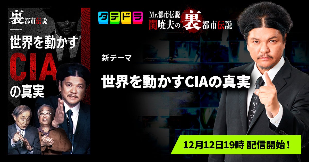 縦型ショートドラマアプリ「タテドラ」は12月12日19時、トークバラエティ『Mr.都市伝説 関暁夫の裏都市伝説』の新テーマ「世界を動かすCIAの真実」(全15話)の配信を開始します。出演は関暁夫さんで、ゲストに国際ジャーナリストの大野和基さん、春名幹男さんが参加します。企画は都市伝説の“裏側”を語る構成で、アプリ内の関連動画総視聴回数は300万回を超えたとしています。新作ではCIA(米中央情報局)を題材に、秘密工作や事件の背景などを扱う内容だといいます。1話約2分の短尺形式のため、隙間時間で連続視聴しやすい点も特徴です。今後は新テーマ追加やゲスト拡充で、アプリ内オリジナル企画の視聴をさらに伸ばす展開が見込まれます。