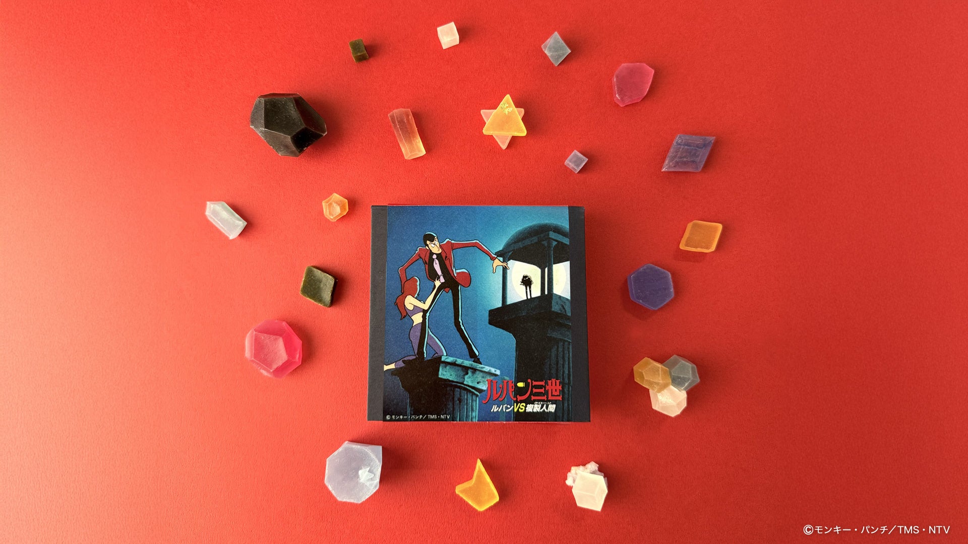 ルパン三世の劇場作品『ルパンVS複製人間』に登場する「賢者の石」をモチーフにした琥珀糖(寒天菓子)「こうぶつヲカシ」が、三越伊勢丹のオンラインギフトサイト「MOO:D MARK by ISETAN」で2025年12月17日10時から期間限定で受注販売されます。価格は3,888円(税込)で、受注は2026年1月20日20時まで。発送は2026年4月上旬以降に順次行われます。