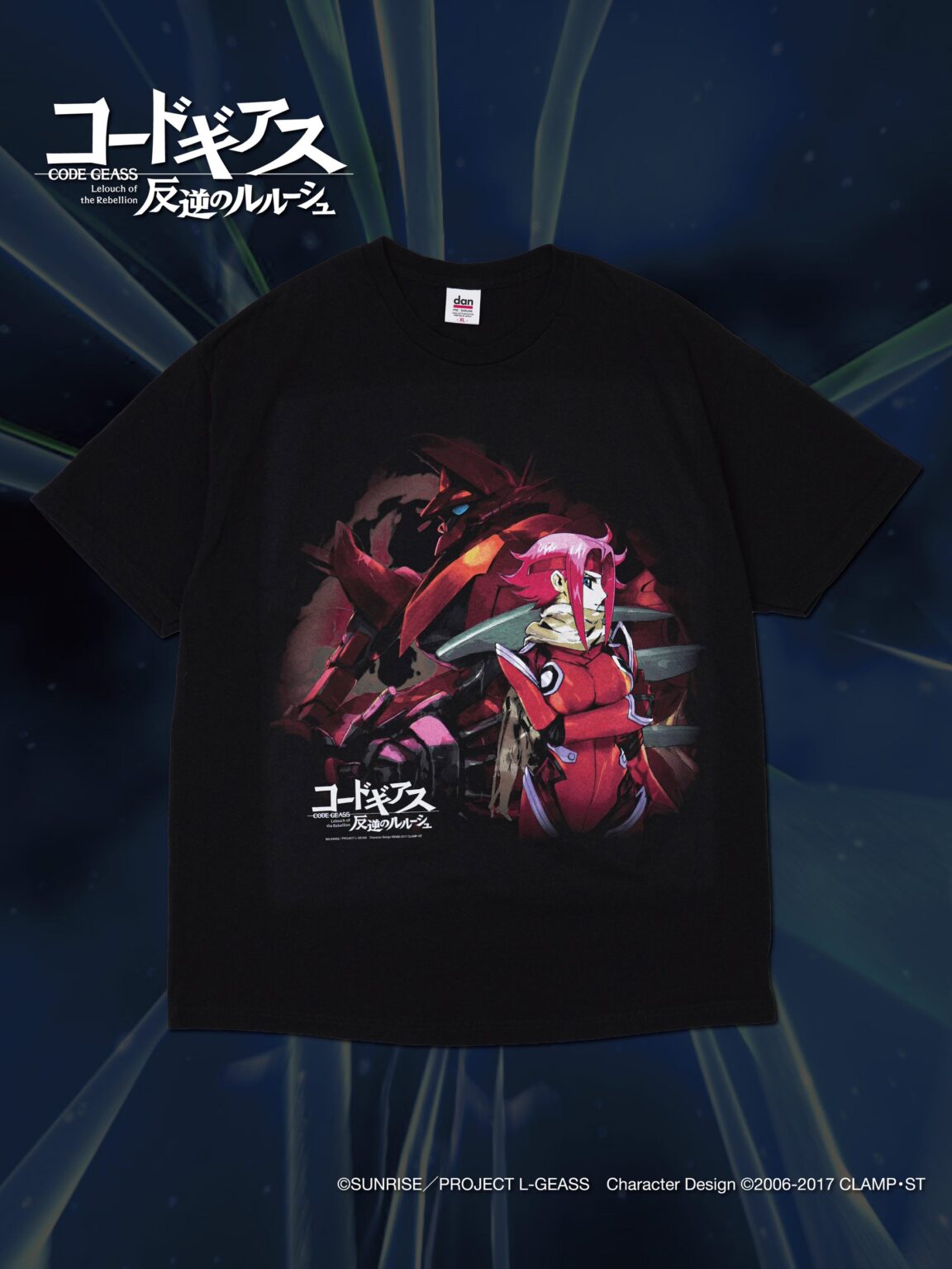 中目黒に店舗を構えるDAN(株式会社DAN)は、アニメ『コードギアス 反逆のルルーシュ』とコラボしたTシャツ第2弾として、ヒロインの一人「カレン」を単体でフィーチャーした1型を発売しました。価格は税抜11,000円で、公式オンラインショップで案内しており、商品のお届けは2025年3月頃を予定しています。企画は2006年の放送開始から2026年で20周年となる節目に合わせた取り組みです。デザインは雑誌『ニュータイプ』2008年8月号のとじ込みポスター図案を採用し、ナイトメアフレーム(作中の人型兵器)などを手掛けた安田朗氏の描き下ろしとして、カレンとKMF「紅蓮弐式」のビジュアルを配しました。ボディカラーは「黒の騎士団」をイメージしたブラックで、左下に作品ロゴとコピーライト表記を入れています。印刷はヴィンテージTシャツの風合い再現を狙い、色を網点で15色に分解して1色ずつ重ねる「特色分解」のシルクスクリーンを採用し、油性ラバーインクにより着用や洗濯での経年変化も想定しています。今後は20周年に向け、同社の“未来のヴィンテージ”路線に沿った追加展開が注目されます。
