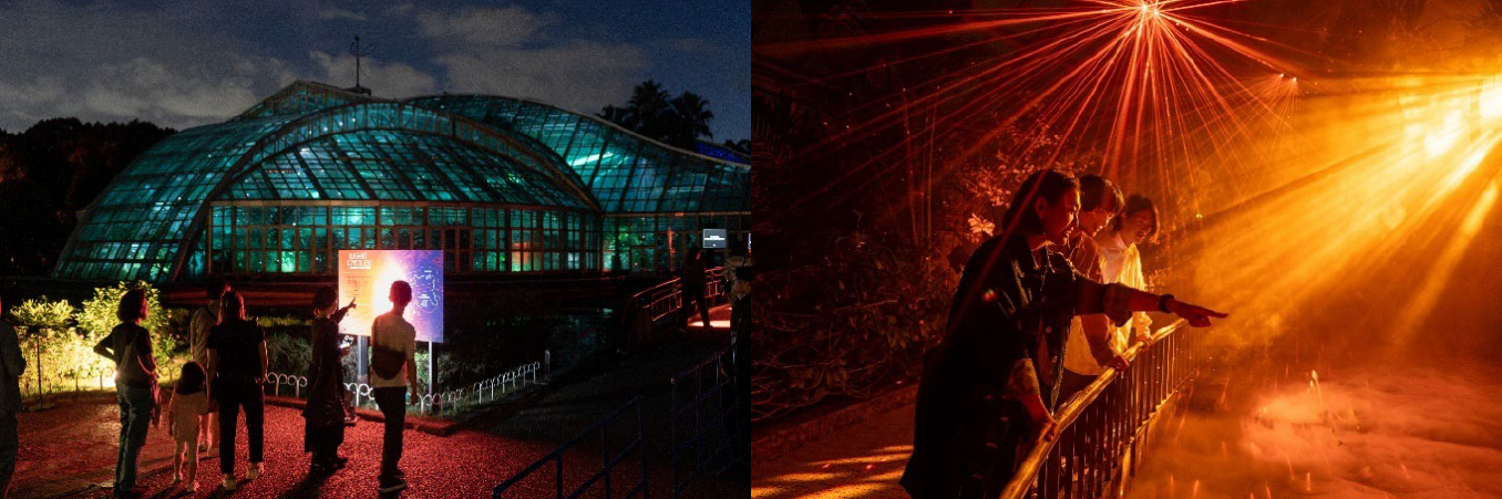 同イベントは、植物園を夜間開放し、没入型(空間全体に入り込むように感じる)体験コンテンツを提供する取り組みです。2025年度は5月24日(土)から通期開催として展開し、温室内のインスタレーションや、FeverによるCandlelight®の開催など、内容を更新してきました。